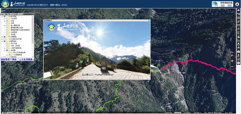 With the government's policy of allowing public access to the mountains across Taiwan, many hikers are looking forward to experiencing Yushan in person. The Yushan National Park Headquarters has made it possible for visitors, who have not yet been able to climb Yushan, to gain a better understanding of the actual mountain sites by setting up the "Yushan 3D Virtual Gallery". Simply use Internet Explorer to access the official Yushan National Park Headquarters website and click on the 3D Virtual Gallery icon to enjoy a Yushan virtual experience tour.